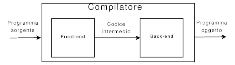 Il compilatore è composto da due interfacce, dette front end e back end. Questa struttura porta molti vantaggi, tra cui la modularità, la portabilità e la economicità.