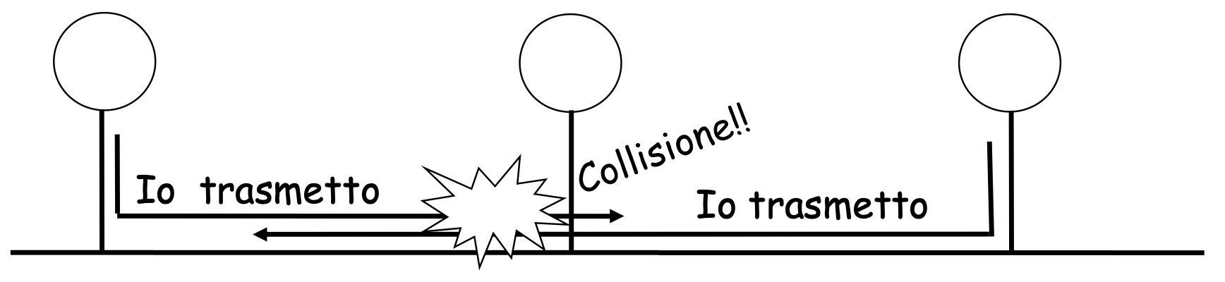 Il problema è la possibile collisione causata dalla spedizione contemporanea di più frame, e è quindi stato creato un protocollo di accesso al mezzo per coordinare le trasmissioni sullo stesso canale.