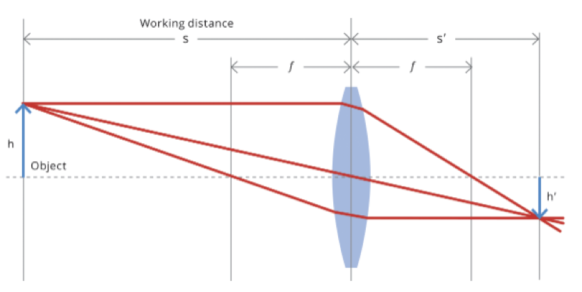 Da qui si possono legare la distanza di lavoro, la lunghezza focale e l’ingrandimento.