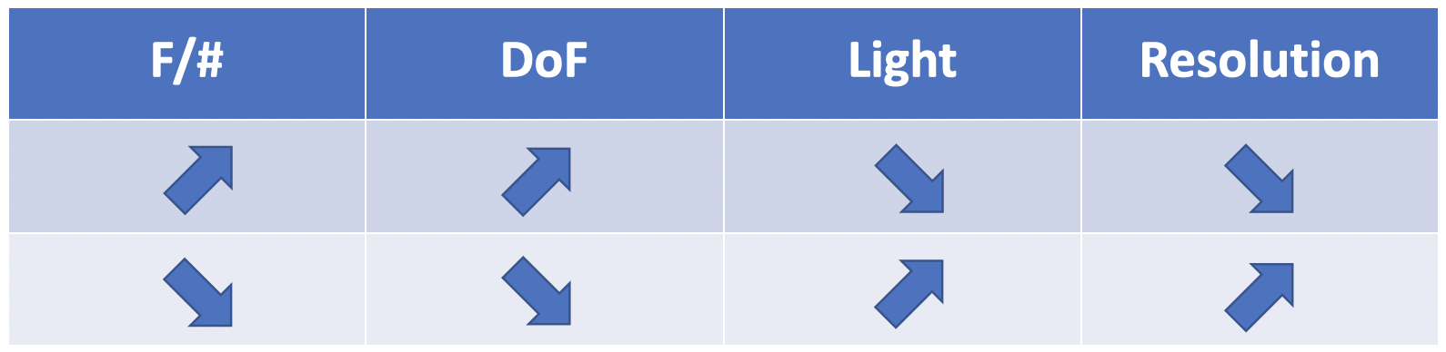 I sistemi ottici sono caratterizzati da uno stop, ovvero un foro nel sistema ottico, che definisce la quantità di luce che entra in un sistema. È valido però solo per ottiche con la stessa lunghezza focale. Per confrontare ottiche con lunghezze focali differenti, bisogna calcolare F#, come rapporto tra lunghezza focale della lente (f) e il diametro dello stop (d).